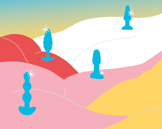 Butt plugs are stationary anal toys meaning once the plug is inserted, you leave it in place, unlike prostate massagers, anal beads, and dildos, which you would choose when you want more motion and stimulation. Plugs come in various shapes, colors, sizes, and materials. They can be worn during solo or partnered play. They can also be used as anal training tools to help stretch and prep your sphincter muscles for anal sex or other types of anal play.